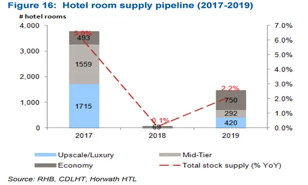 According to RHB, there are 3,767 hotel rooms in the pipeline this year, with 45.5% of the rooms in the upscale and luxury segment.