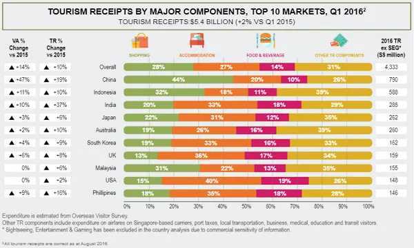 Singapore's tourism kicked off with a bang in 2016, as both visitor arrivals and tourist spending skyrocketed in Q1.