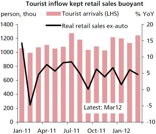 The healthy tourist inflows have buttressed growth in the tourism-related sectors and the resilient economic conditions have supported growth in the business services sector.