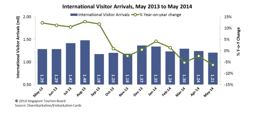 Data from the STB show that overall visitor arrivals for January to May were down 1.7 per cent at 6.3 million from a year ago.