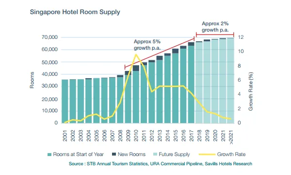 This chart from Savills Research shows that from 2009 to 2017, total hotels room supply increased by 67.9% or at a CAGR of 5.9% per annum.