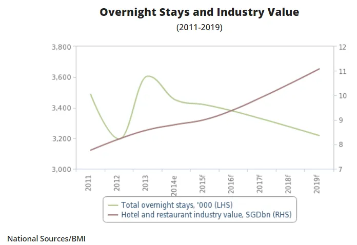 From now until 2019, BMI expects the average length of stay to increase as Singapore begins to attract more longer-stay visitors by developing the range of attractions on offer and gradually shifting away from a transit destination.