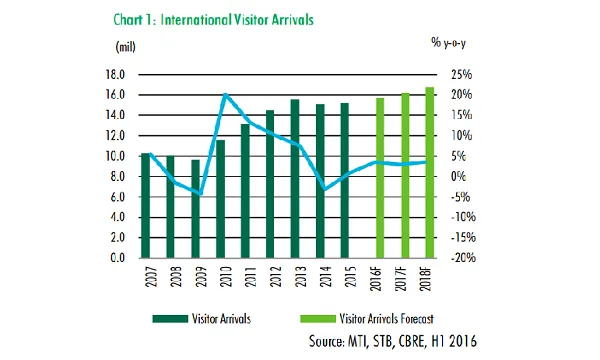 The city-state's tourism industry is looking to bounce back from a dreary 2015 as it booked a 13.3% growth so far in visitor numbers.