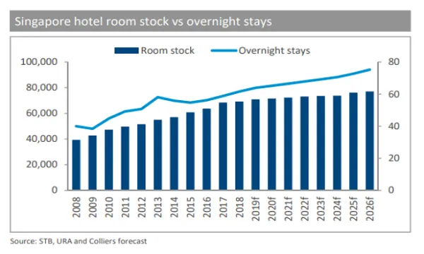 With the recent tender of the government land site at Club Street, the white sites at Pasir Ris Central and Marina View, which Colliers estimated could together potentially accommodate around 930 rooms, an additional 2,500 rooms are forecasted to be added between 2022 and 2025.