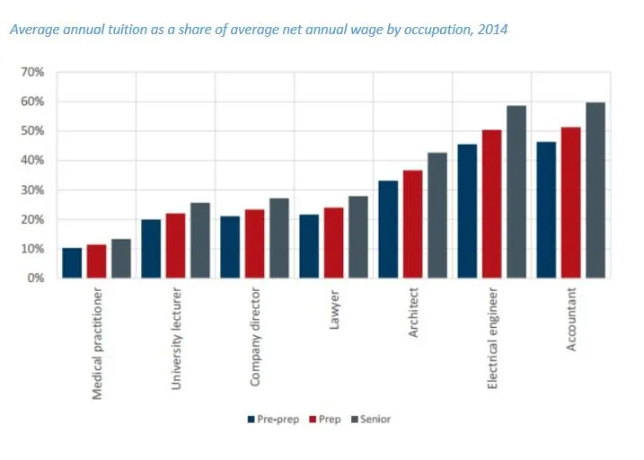 In 2015, the average annual tuition fee at a Singapore-based international school was $27,300 for pre-preparatory, $30,300 for preparatory and $35,100 for senior school.