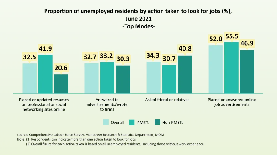 Over four in 10 or 41.9% of professionals, managers, executives, and technicians (PMETs) uploaded their resumes online in 2021 through social networking sites including LinkedIn and Facebook, according to the Ministry of Manpower.