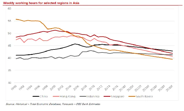 DBS thinks that with more advanced automation, increased productivity and efficiency from technology and shorter, more flexible working methods will enable Asia to be closer to a 35-hour work week.