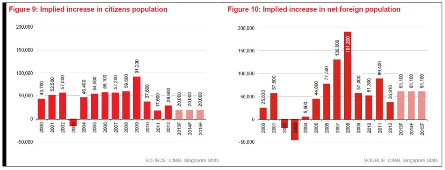 According to CIMB, the increase of Singapore citizens peaked in 2009 (+91.2k) when more PRs and foreigners sought to lay down roots here.
