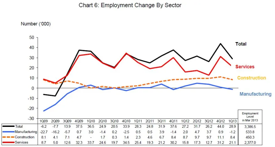 Chart of the Day: Singapore's total employment jumped by only 28,900 in 1Q13