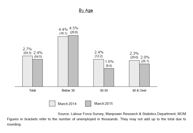 Although unemployment among younger residents ticked up, close to half of 48% of unemployed residents were still older than 40. The MoM said that this reflects the country's ageing labour force.