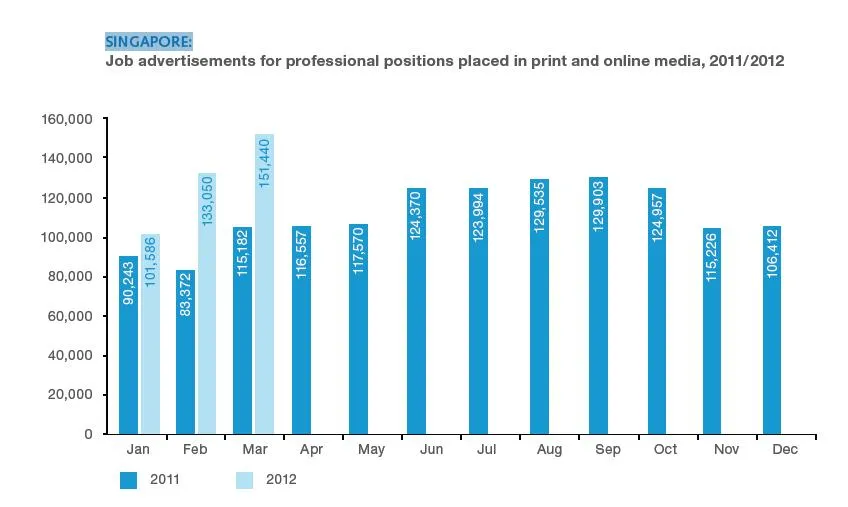 Recruitment advertising in Singapore saw healthy growth in Q1 2012 with an 11.4% increase quarter on quarter and a 33.7% rise on Q1 2011 figures.