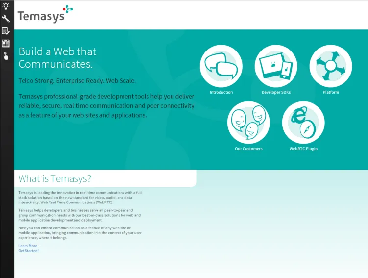 When Temasys started, it was established as a Video as a Service (VaaS) business, using what was then a leading edge technology from Vidyo (NJ, USA). In August 2012, Temasys transformed its business, embracing WebRTC, and began to develop enterprise-grade solutions with this technology.