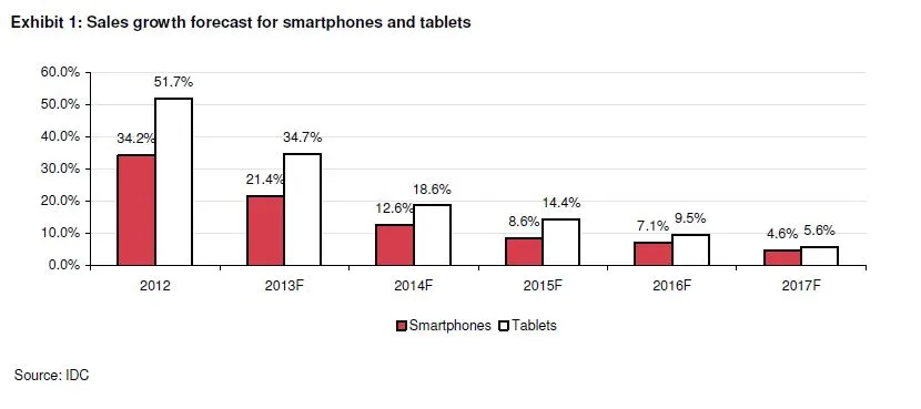 "This growth is expected to moderate to 18.6% for tablets and 12.6% for smartphones in 2014, which we believe is partly attributed to increasing saturation, especially within the high-end smartphones space,"