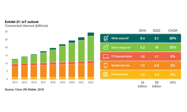 According to Ericsson Mobility Report, it is forecasted that there will be around 29b connected devices by 2022, of which 18b will be related to IoT.