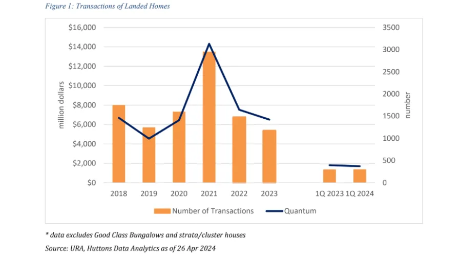 Transactions of landed homes went up 21% to 296 properties in the first quarter from the previous three months, according to data from Huttons Asia.