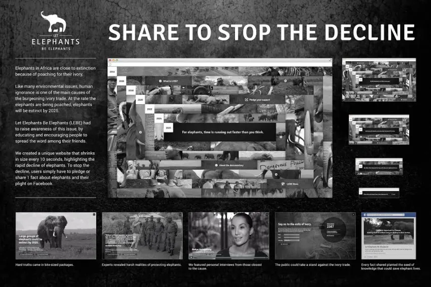 To raise awareness among Asian consumers that the high level of poaching that’s driven by Asia’s ivory trade will kill off African elephants by 2025, JWT Singapore created a unique website that shrinks in size every 10 seconds, highlighting the species’ rapid decline.