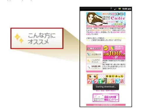 A group of scammers is attempting to lure female Android users in Japan into downloading an app by sending emails stating how the recipient can make some money easily. The email includes a link to a site that appears to be designed to assist women to make money simply by sending emails. When a certain link on the site is clicked, Android.Loozfon is downloaded onto the device. Other links direct the user to a dating service site that attempts to charge money to use the service, which supposedly helps women meet rich men.
