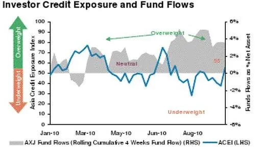 The Asia Credit Exposure Index (ACEI) rose from 38 to 55 over the past week, according to a report on Asian credit from the financial services firm.
