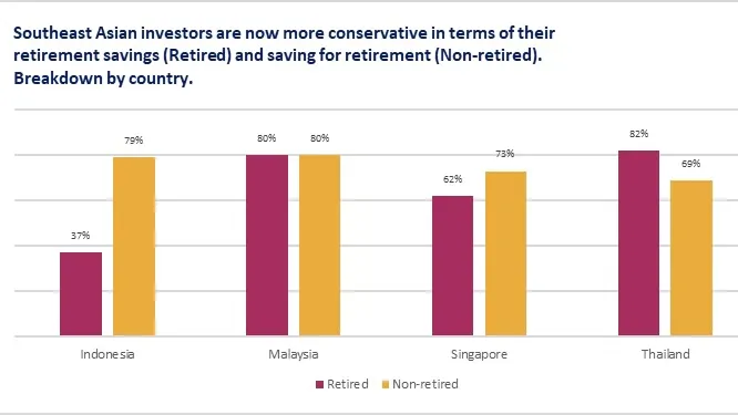 Seven in 10 or 73% of non-retired Singaporean investors said that they have become more cautious in terms of their retirement savings, whilst 62% of retired Singaporean investors said the same.