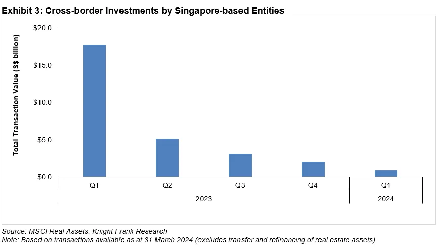 Outbound investments from Singapore have dipped 54.3% QoQ and 94.9% YoY to $911m in 1Q24, data from MSCI Real Assets showed.