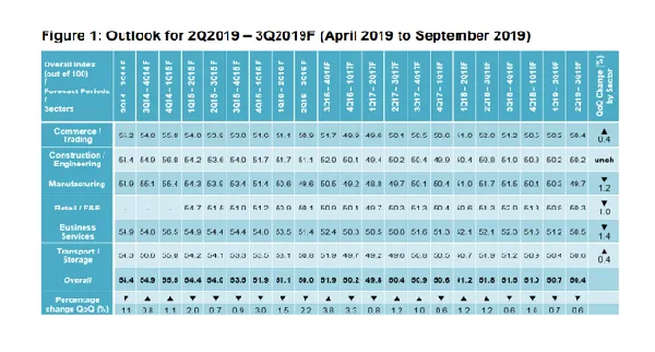 “For this sector, the weakening in turnover expectations and profitability expectations saw the biggest decrease in sentiment over this quarter. This is possibly due to declining factory output which indicates a weakness in manufacturing demand,” they highlighted, adding that the trend corresponded to findings from a Monetary Authority of Singapore (MAS) Survey where economists expected the manufacturing sector to register a conservative 2.0% growth in 2019 as compared to 7.2% in 2018.