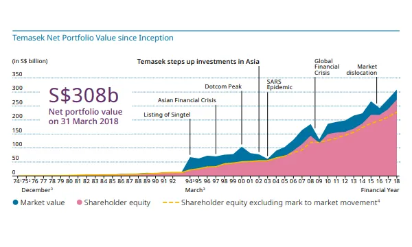 Temasek Holdings’ portfolio value hit a record high of $308b in 2018, up 12% from last year’s $275b and almost thrice the dotcom peak of $100b. It invested $29b throughout the year.