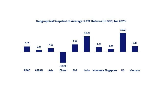 The Singapore Exchange (SGX) Exchange-traded fund (ETF) market was defined by US and India-focused ETFs, which generated the strongest gains in 2023.
