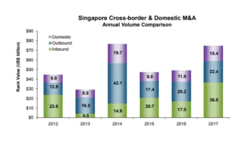 Singapore M&A activity up 3.9% to $119.82b in 2017