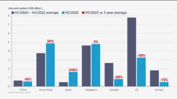 Inbound capital flow in APAC from SG in 1H23 was 3% higher than its three-year average.