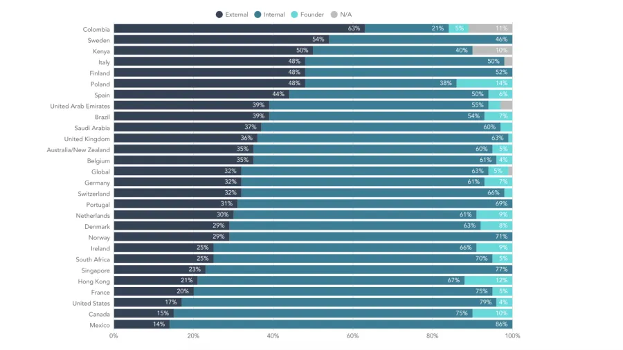 Meanwhile, only 23% of CEOs in Singapore are hired externally.