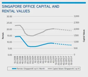Singapore has been the third most expensive office location in Asia since 2009 at US$82.42 per sq ft per year in 4Q 2011.