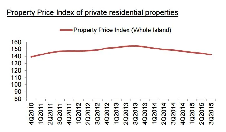 According to a release by the Urban Redevelopment Authority, prices of non-landed properties fell 1.2%, 1.6%, and 1.6% for the Core Central Region (CCR), the rest of the Central Region (RCR) and Outside Central Region (OCR) respectively.