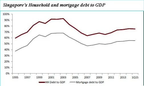 "At the peak of the cycle, household debt to GDP stood at a high 92.6% in 2003. As at the beginning of 2015, it was down to 75%. Meanwhile, mortgage debt to GDP was at 55.4% compared to a high of 55.6% at end-2014 and 68.1% in 2003. These ratios show that the measures taken are having a restraining effect but, we think, it has by no means corrected sufficiently to buffer another round of asset price reflation," she said.