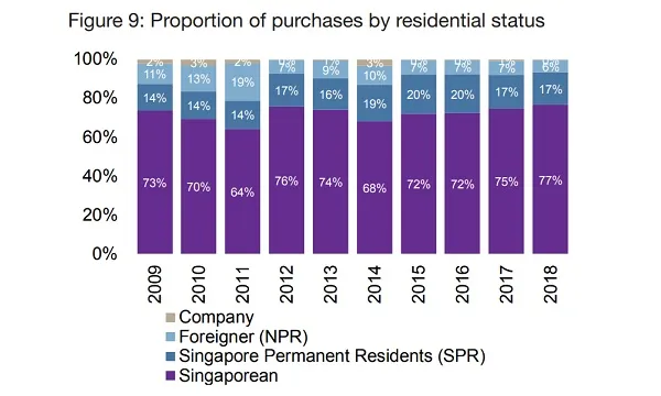 The proportion of total condo sales by Singapore citizens (SCs) rose from 74.7% in 2017 to 76.6% in 2018 as the cooling measured had a greater impact on Singapore permanent residents (SPRs) and non-permanent residents (NPRs), according to a report by Edmund Tie & Company (ETCo). This was the highest since 2009, surpassing the 75.7% in 2012.