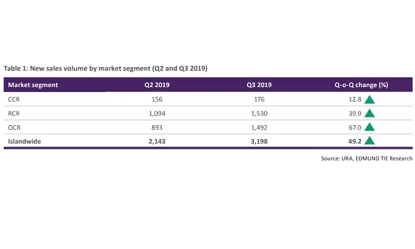 All three regions recorded growth in new sales, with the largest growth being seen in Outside Central Region (OCR), due to projects being priced attractively, hence drawing buyers into the market with the large variety of options. The quarterly figure showed growth despite a decline in the number of new project launches. It was lifted by a rise in the number of units released for sale, with the launch of major projects in Q3.
