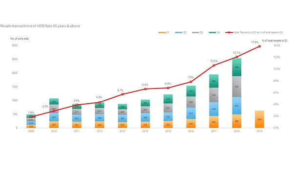 Sales of older flats made up 13.9% of total resale transactions in Q1 2019.