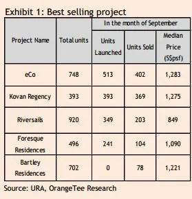 Other projects which performed well were namely Kovan Regency, Riversails, Foresque Residences, and Bartley Residences, all located within OCR. With the exception of eCo and Kovan Regency, all other 3 projects had already been launched for sale. Kovan Regency sold 369 units at a median price of $1,275 psf; Riversails sold an additional 203 units at a median price of $849 psf; Foresque Residences sold an additional 104 units at a median price of $1,090 psf; Bartley Residences sold an additional 78 units at a median price of $1,221 psf.