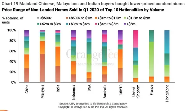 Over half of condos bought by Chinese, Malaysian and Indian buyers were priced below $1.5m.