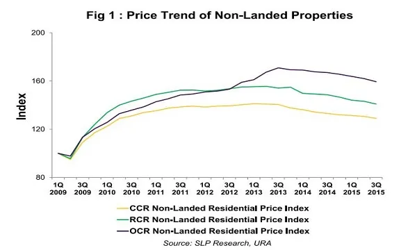 According to a report by SLP International, since its peak in 2Q13, the Rest of Central Region (RCR) price index had dropped by 9.3% while the Outside of Central Region (OCR) prices peaked slightly later at 3Q13, but has been down 6.7% since.