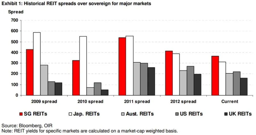 Chart of the Day: Check out SREITs' historical spread versus Asian peers