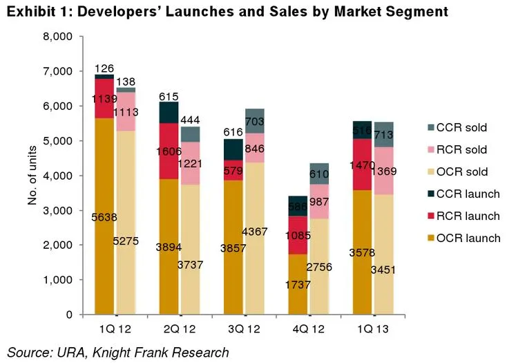According to Knight Frank, developers sold a total of 2,793 units in March 2013, mainly from major launches in the Outside Central Region such as D’Nest, Urban Vista, Trilinq, Bartley Ridge and Hillion Residences.