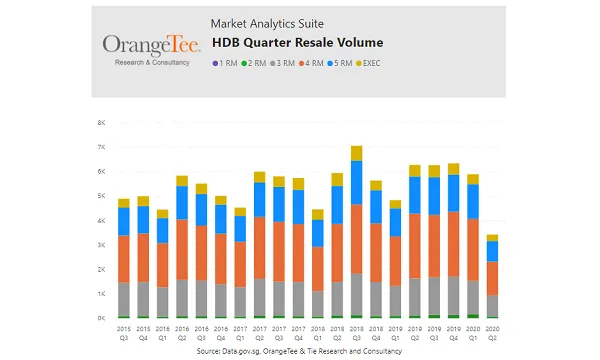 The HDB office was closed and some transactions could not be completed. Based on HDB data from data.gov.sg, the number of resale transactions plunged to 424 units in April and a historical monthly low of 363 units in May. The HDB resale market roared back to life once the Circuit Breaker measures were lifted as sales volume rebounded strongly by 575.2% MoM to 2,451 units in June.