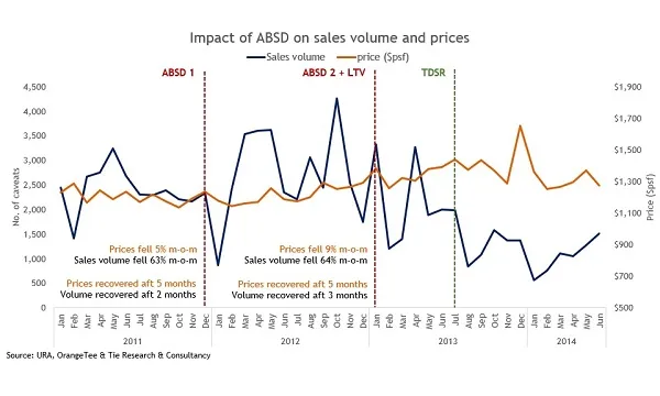 The past trends seemed to indicate that after ABSD, sales volume will fall at a faster rate than prices, Sun added. "However, the fall in prices is usually more prolonged than sales volume."