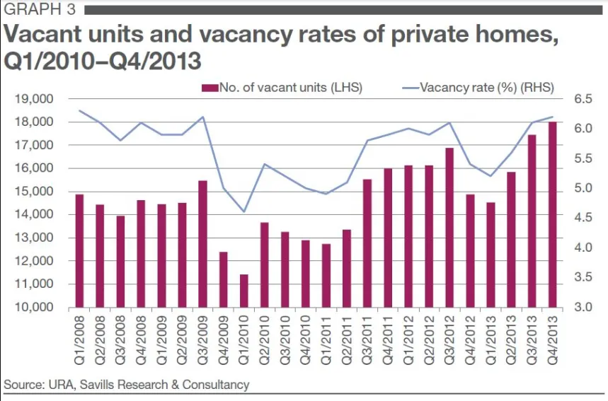 According to Savills, as of Q4/2013, there were 18,003 vacant units out of the current 289,370 available private homes across the island.
