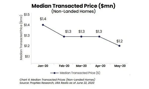 Chart of the day: Median price for non-landed homes dips to $1.2m in May