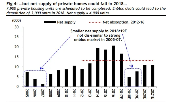 This chart from Maybank Kim Eng shows the number of available private homes could fall to 4,900 next year.