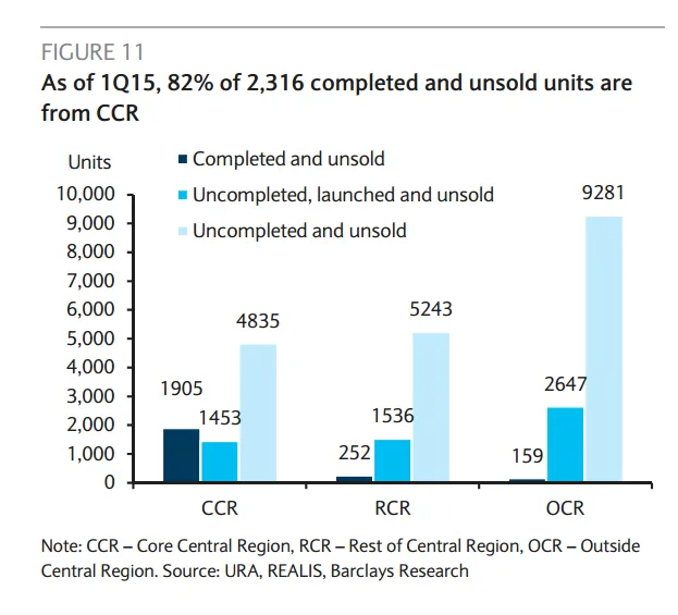 Over 2,300 completed private condominium units remained unsold as of the first quarter, a report by Barclays revealed.