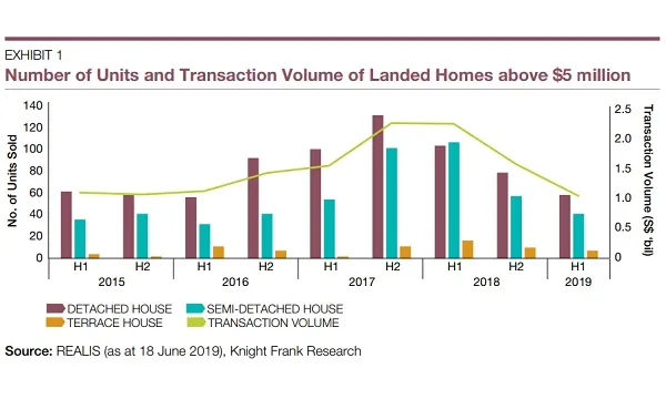Sales of luxury homes valued above $5m and good class bungalow both fell.
