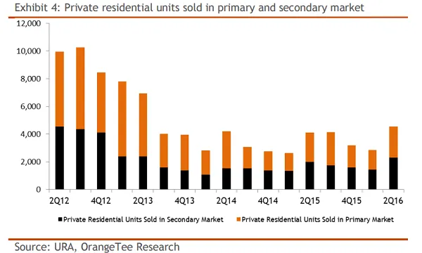 According to a report by OrangeTee Research, the percentage price change for the CCR and RCR for 2014/2015/2016H1 were -4.1%/-2.5%/0.6% and -5.3%/-4.3%/0.2% respectively.
