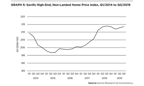 Landed properties rose 1%, a reverse from the 0.1% decline in Q2. The average prices in the luxury segment also inched up 0.4% QoQ in Q3.